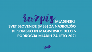 MSS razpisuje nagrado za diplomsko in magistrsko nalogo s področja mladih za leto 2021.