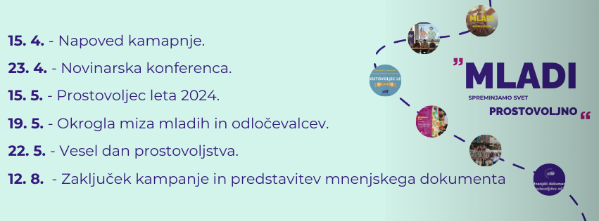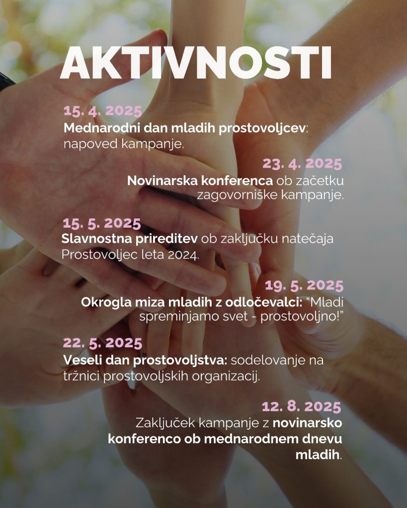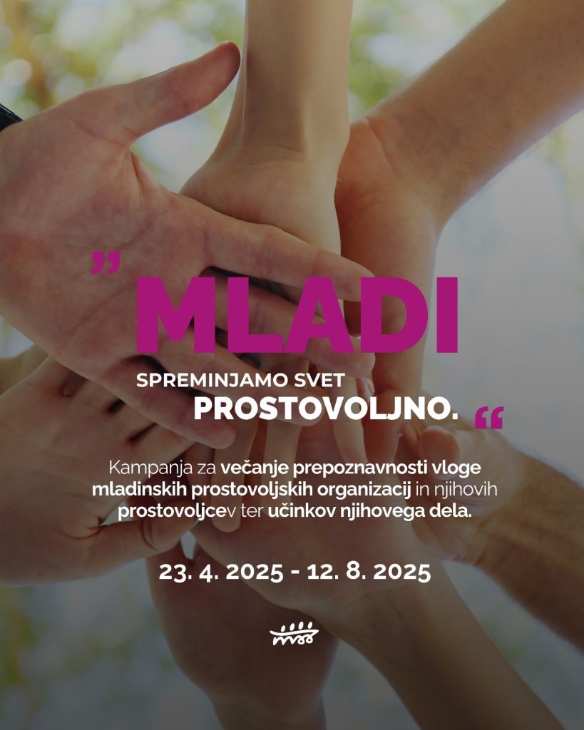 V kampanji Mladi spreminjamo svet – prostovoljno! (#MSSprostovoljno) bomo med aprilom in avgustom 2025 izvedli niz dogodkov, s katerimi želimo poudariti pomen prostovoljstva mladih ter okrepiti sistemsko podporo prostovoljcem in organizacijam, ki z njimi delajo.