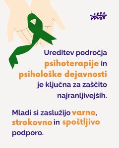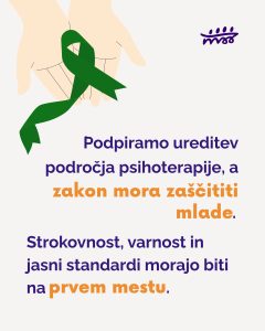 Ureditev psihološke dejavnosti: Ker Slovenija še nima urejenega zakona o psihološki dejavnosti, obstaja tveganje, da se posamezniki neustrezno predstavljajo kot psihologi ali psihoterapevti, kar je lahko nevarno zlasti za mlade.