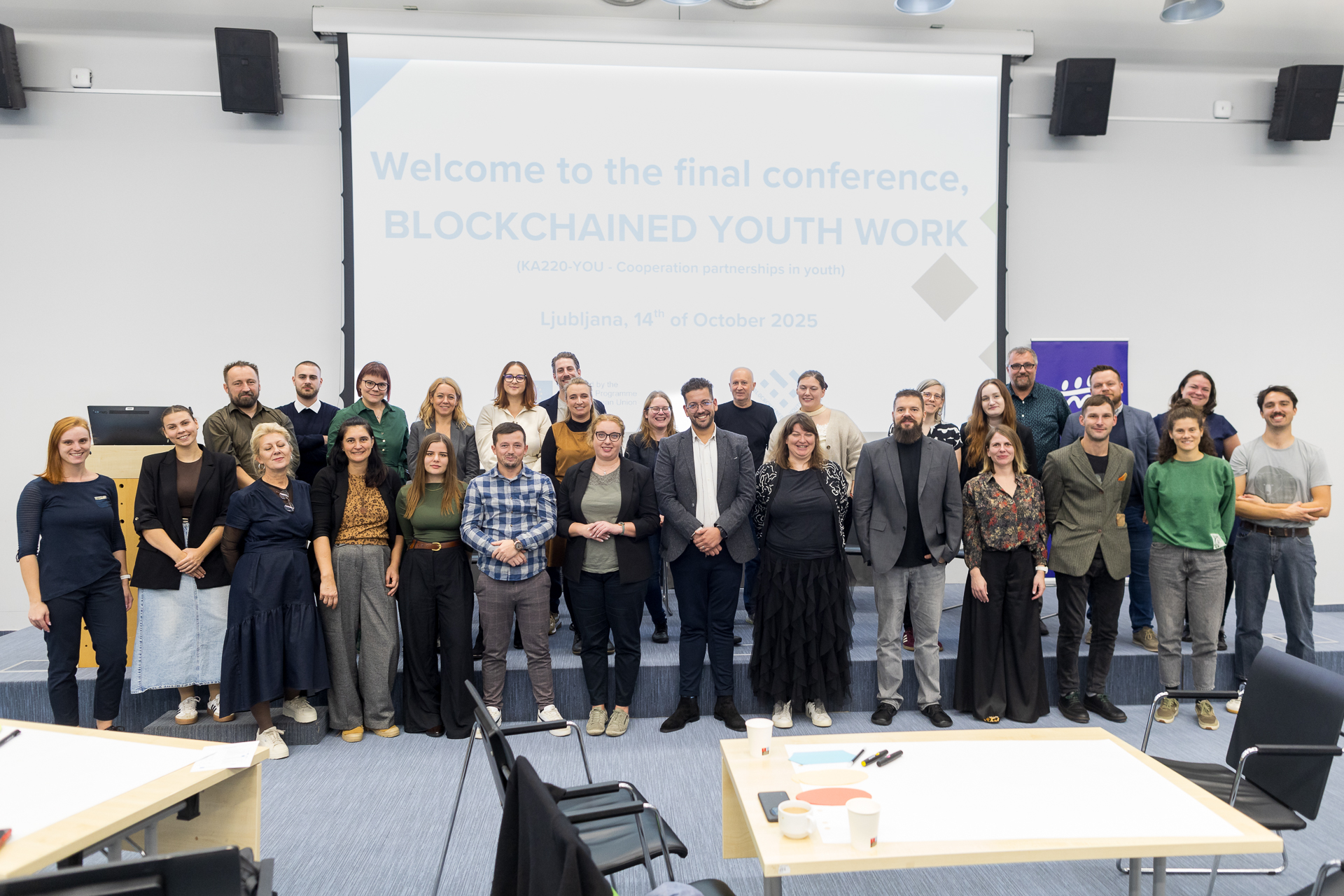 V torek, 14. oktobra 2025, je v veliki dvorani Fakultete za družbene vede potekala zaključna konferenca projekta Blockchained Youth Work. Udeležilo se je je 40 slovenskih in tujih gostov, na okrogli mizi pa so sodelovali tudi ključni odločevalci z mladinskega sektorja.